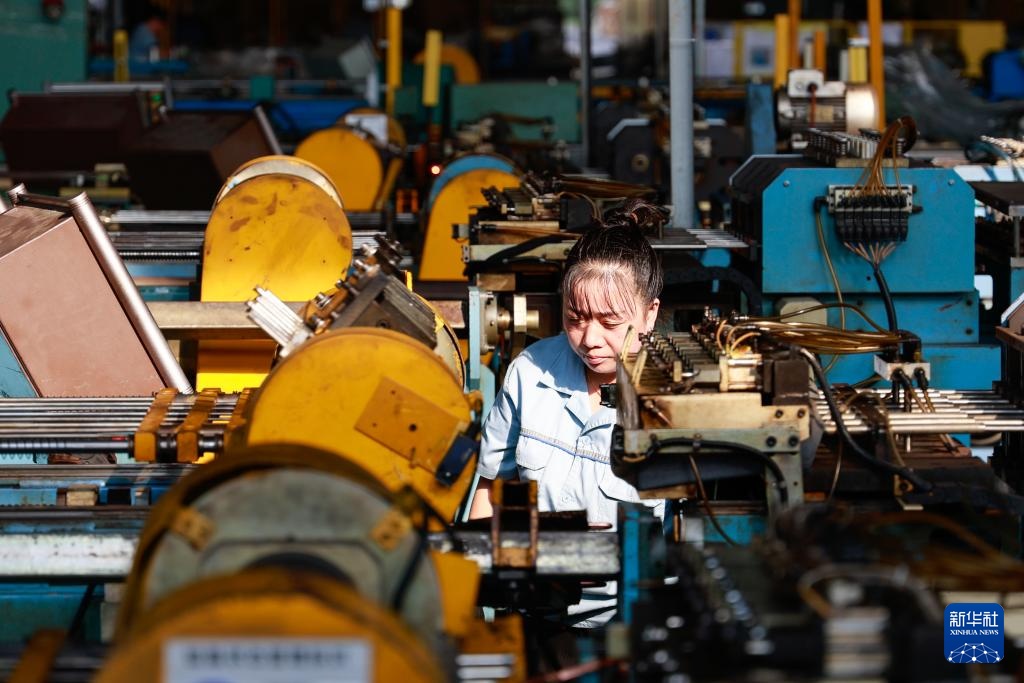 9月17日,在江苏常州友奥智能科技股份有限公司,作业人员在出产车间操作弯管机。新华社记者 刘佳琪 摄