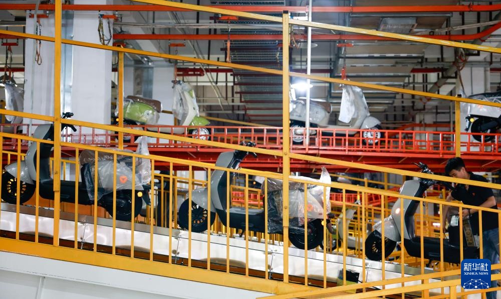 这是9月16日在江苏无锡锡山区电动车工业园内的雅迪科技集团有限公司拍照的电动车。新华社记者 刘佳琪 摄